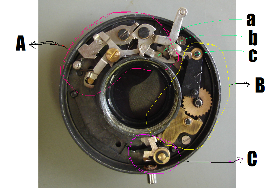 シャッターをあけるカギ状の金具。シャッターを切る時に